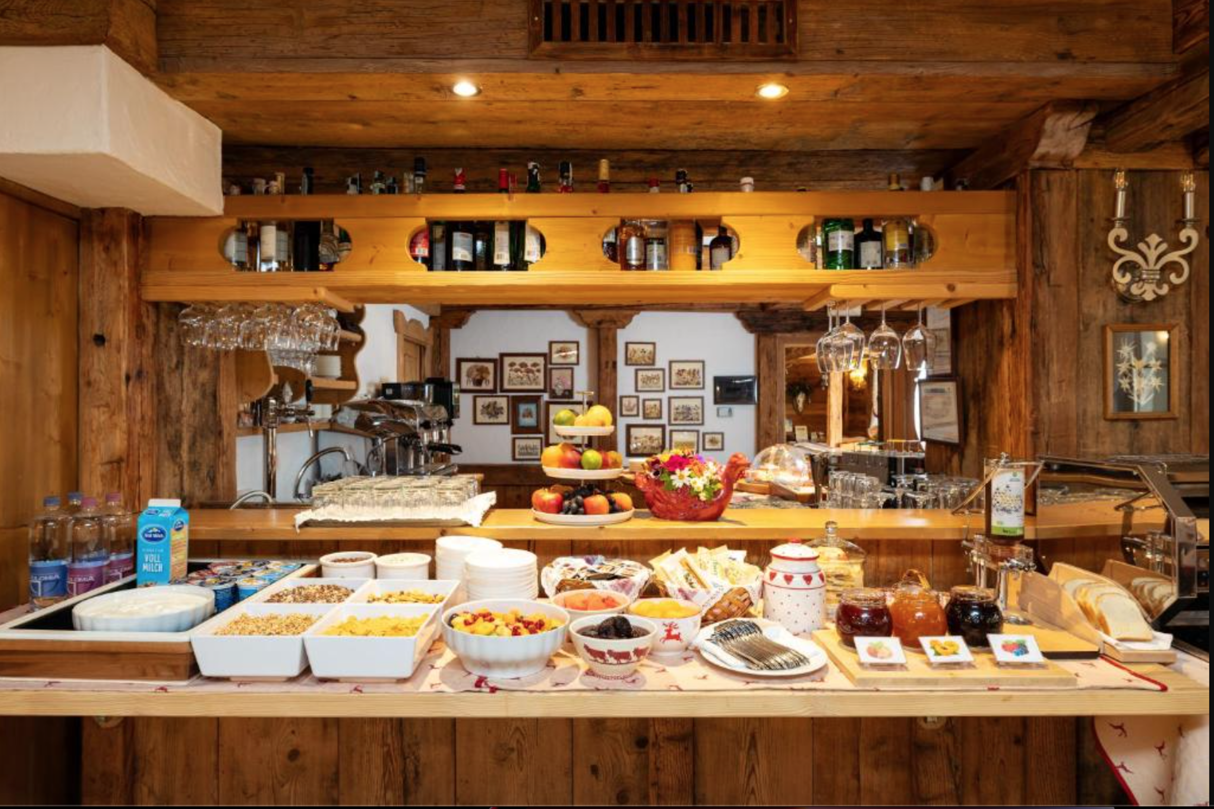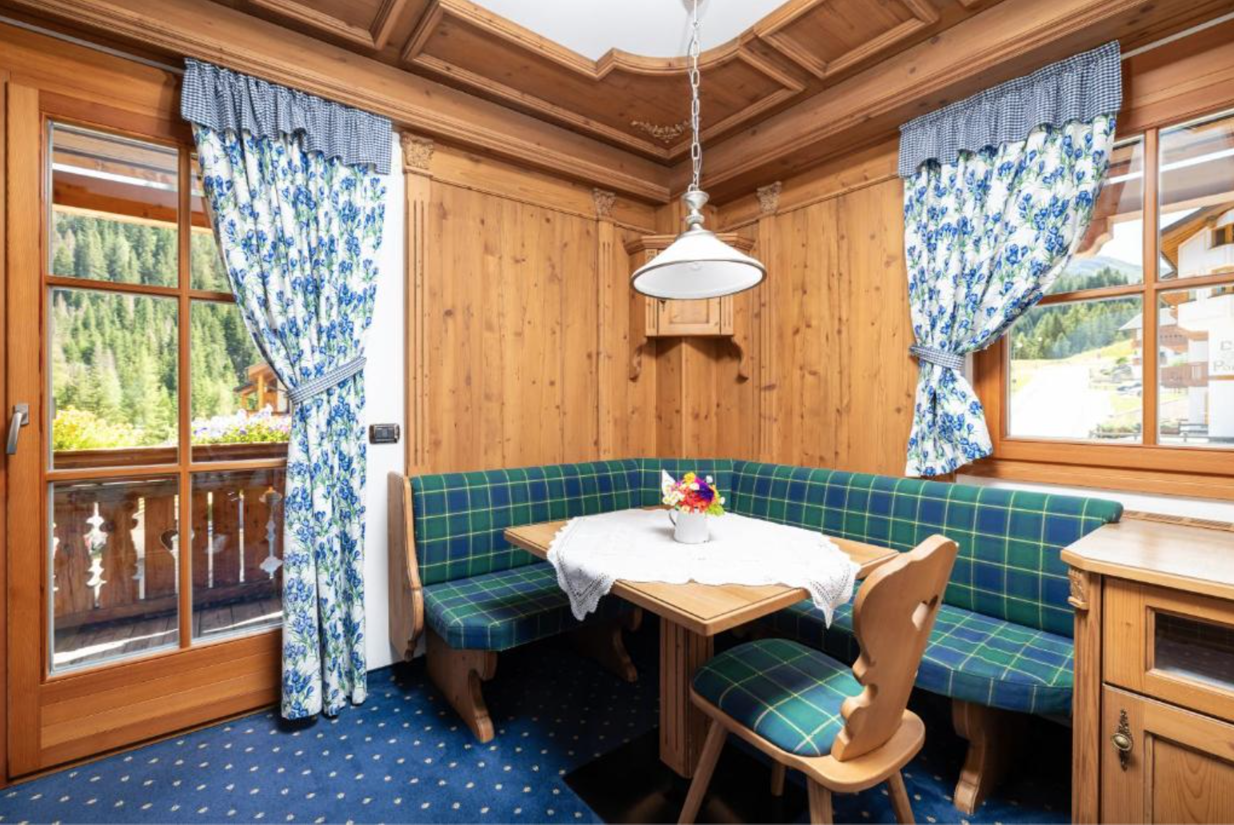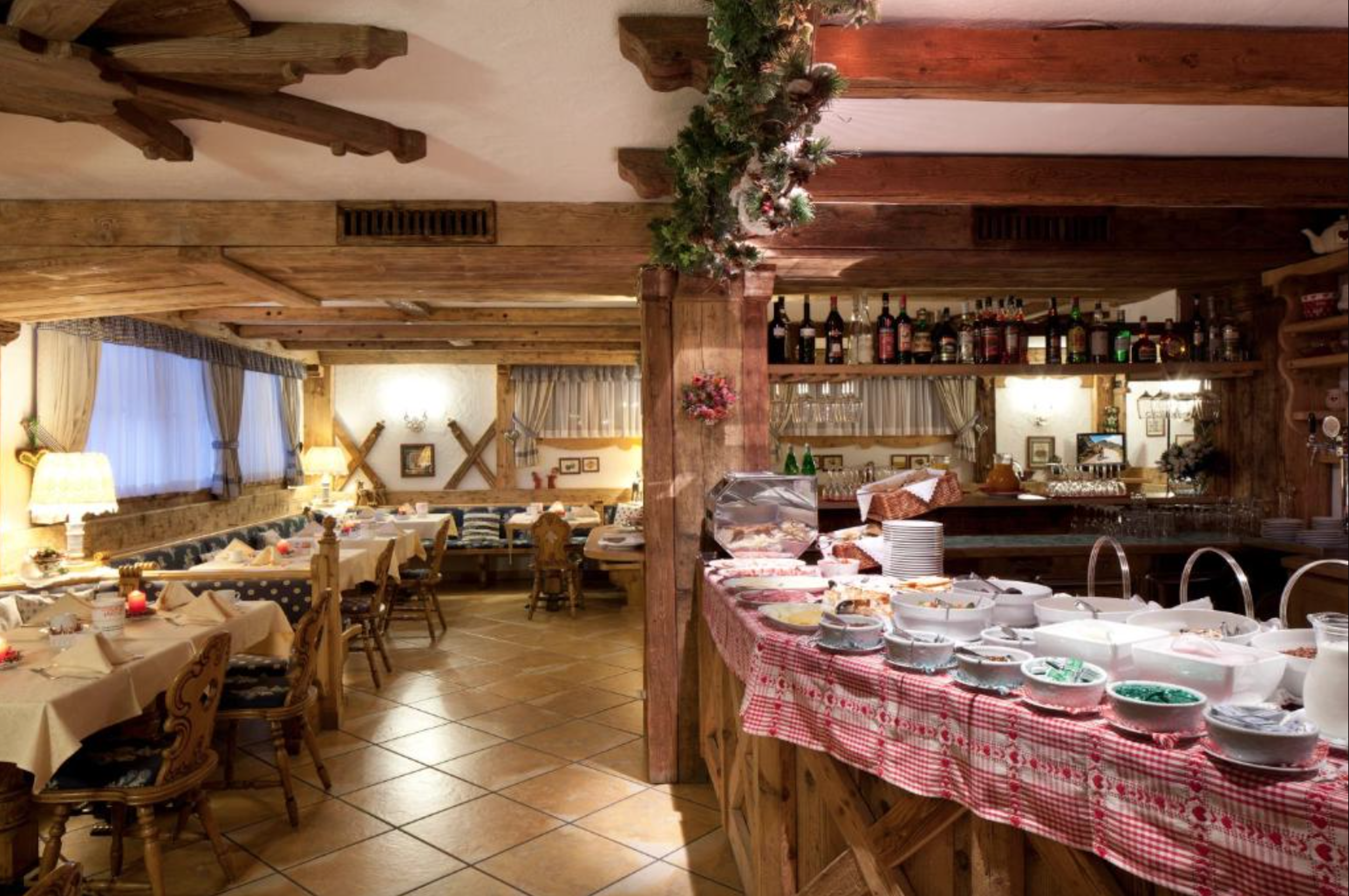 Hvis man ønsker middag hver aften, kan dette tilkøbes og nydes på Sporthotellet. Chalet Barbara har for nogle år siden modtaget en pris som et af Dolomiternes bedste morgenmadshoteller. Morgenmaden er meget generøs. En rejsende, der rejste med os, sagde: "formentlig den bedste hotelmorgenmad, jeg har fået i Alperne. Og jeg har stået på ski i 30 år."