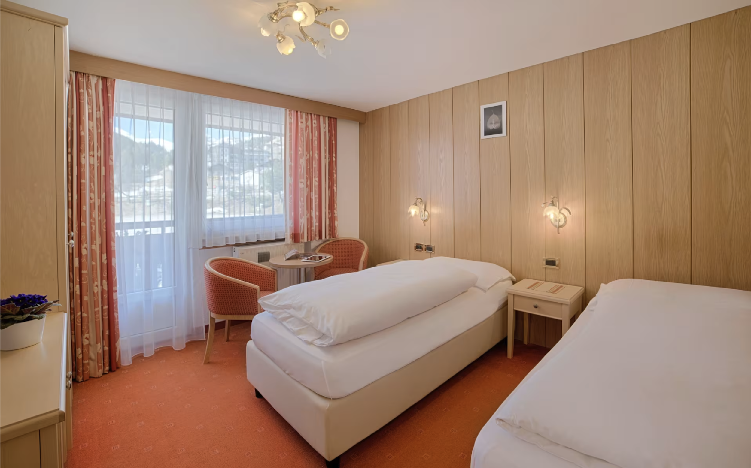 Rummelige værelser på cirka 25–26 m², komfortabelt indrettet med fyrretræ. Gulvet er belagt med tæppe. Værelserne er udstyret med en dobbeltseng eller to enkeltsenge, en sovesofa med et lille bord samt et ældre badeværelse med enten bruser eller badekar, toilet, bidet og hårtørrer. Derudover er der et 43-tommers fladskærms-tv med satellitkanaler, Sky og radio.