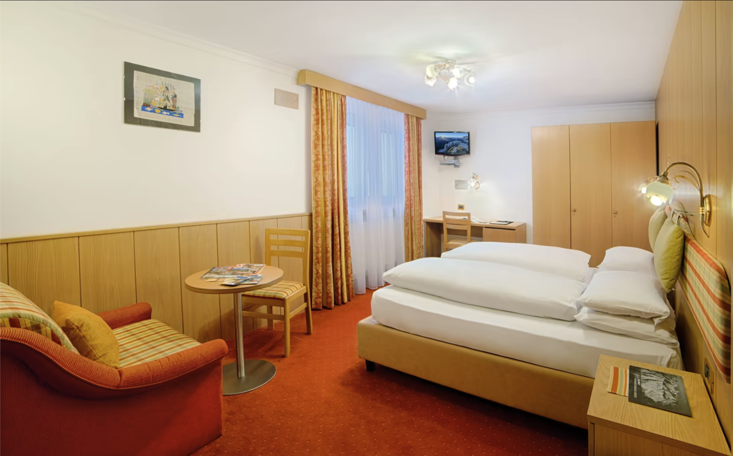 Hyggeligt og centralt hotel med halvpensionMeget hyggeligt hotel i ægte alpestil midt i centrum af Arabba. Hotellet har flotte værelser og en fantastisk wellnessafdeling. Her får du altid morgenmad og en tre-retters middag med stor salatbuffet. Kokkerne er meget dygtige, og gæster, der har boet her, roser maden.