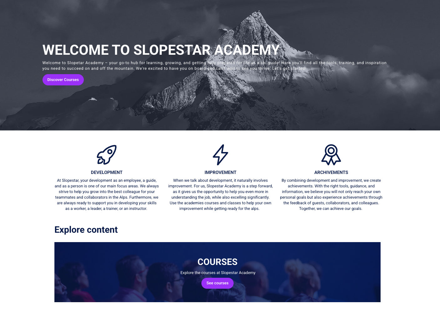 Slopestar Academy er skabt for at give vores guider, ferierådgivere og ledere de bedste forudsætninger for at udvikle sig i vores virksomhed. Alle kurser og lektioner er på engelsk.