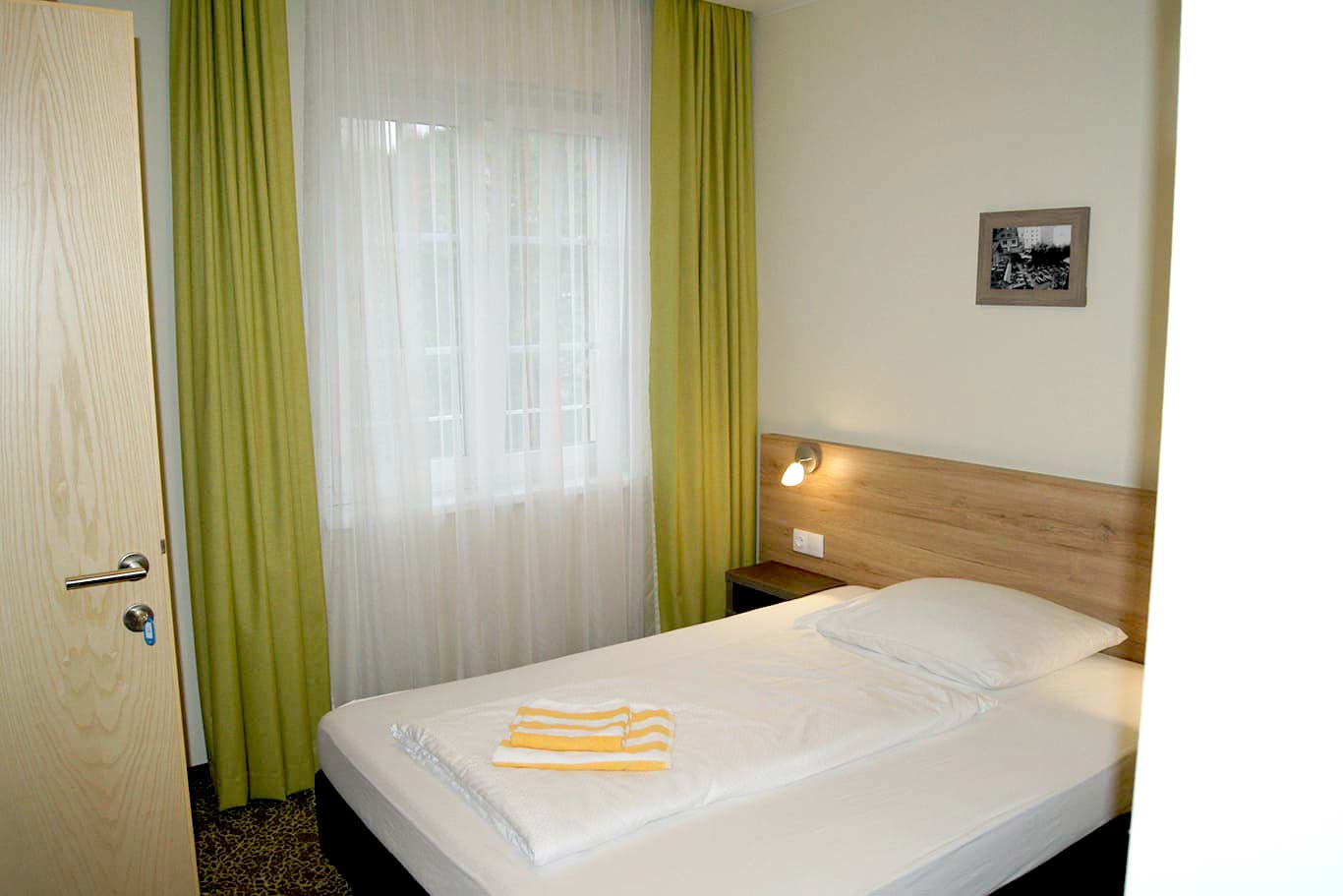 Skønt enkeltværelse med eget badeværelse, tv og wifi. Værelset er på 12 kvm.