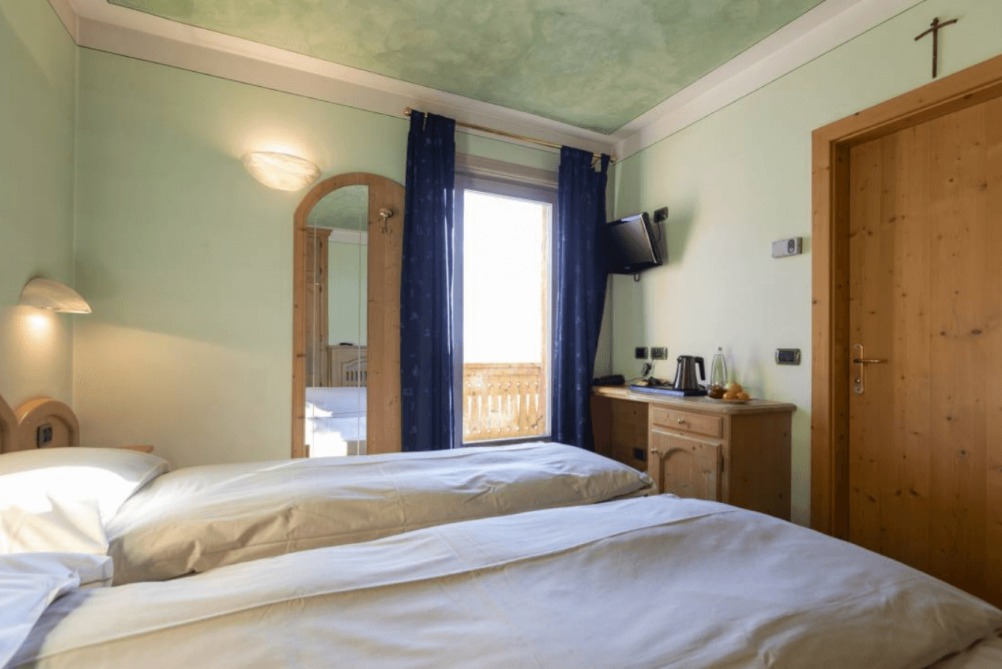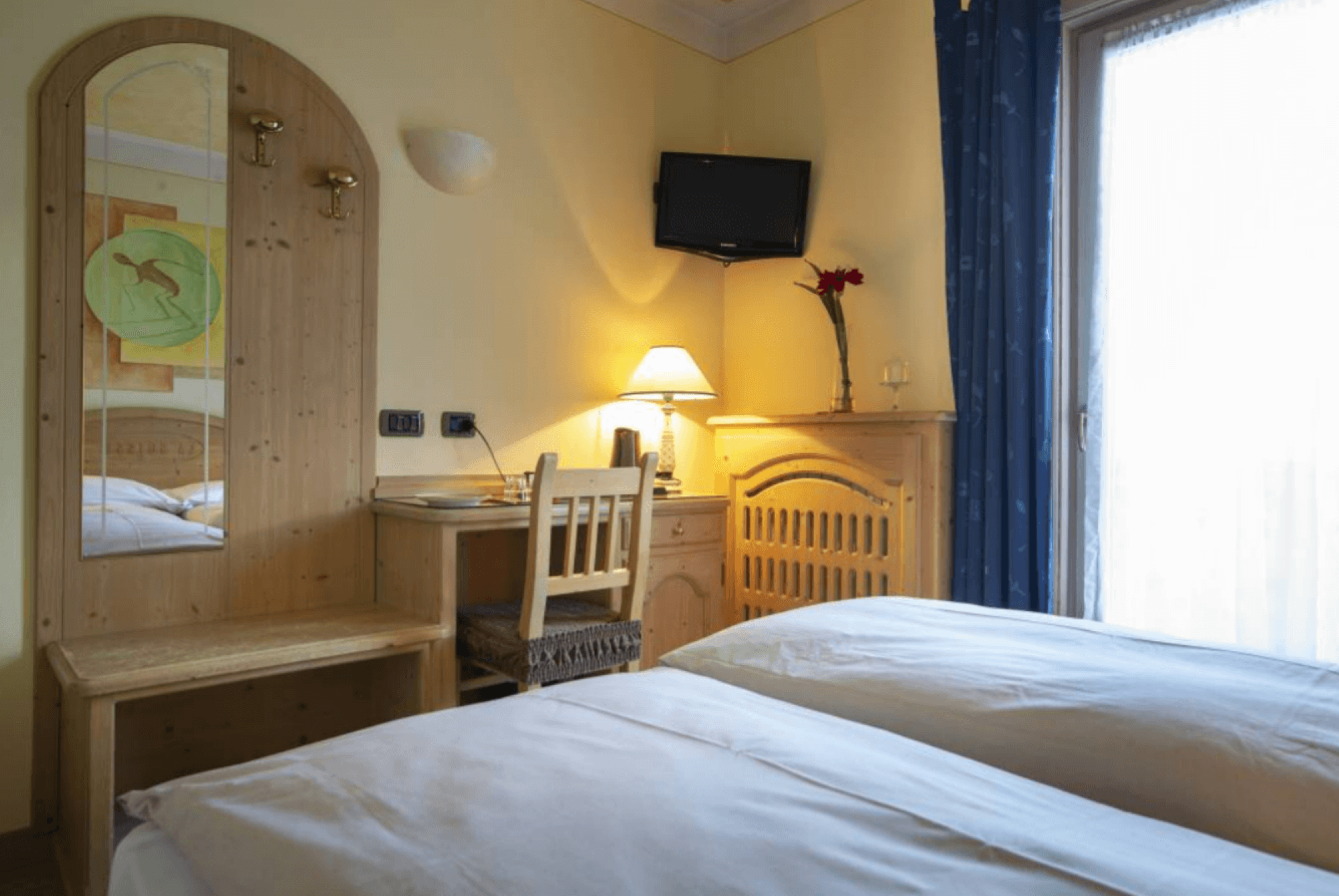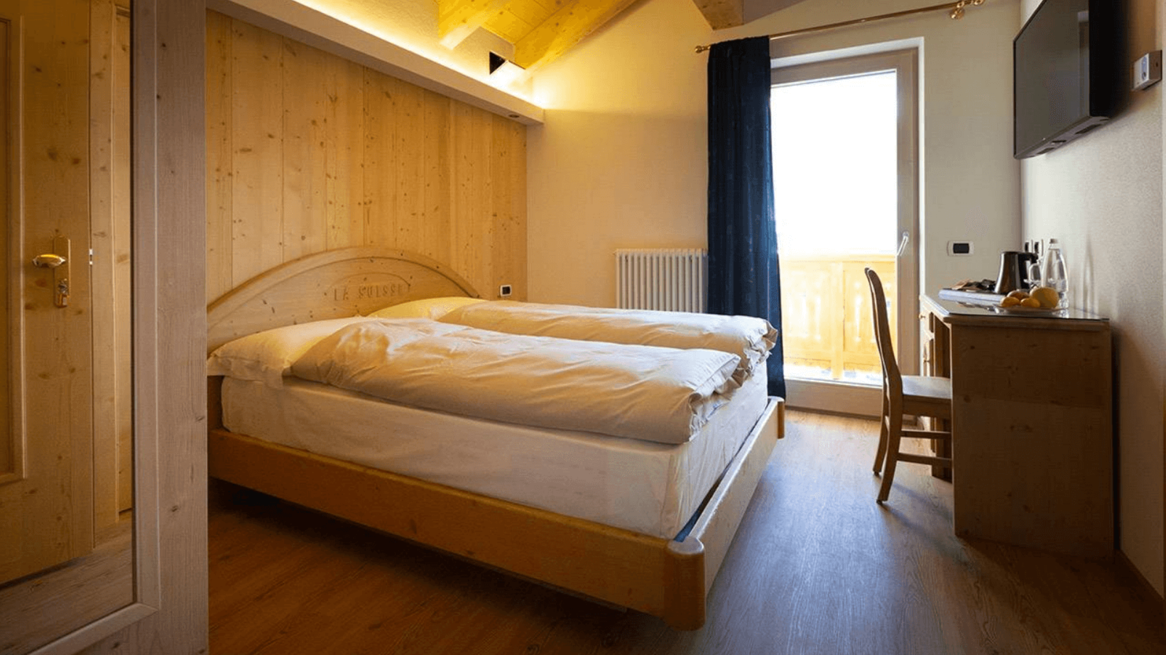 Elegante værelser på ca. 12m2 indrettet i afslappet alpestil med dobbeltseng eller 2 enkeltsenge. I værelset er der safeboks, TV, wifi, elkedel og hårtørrer.