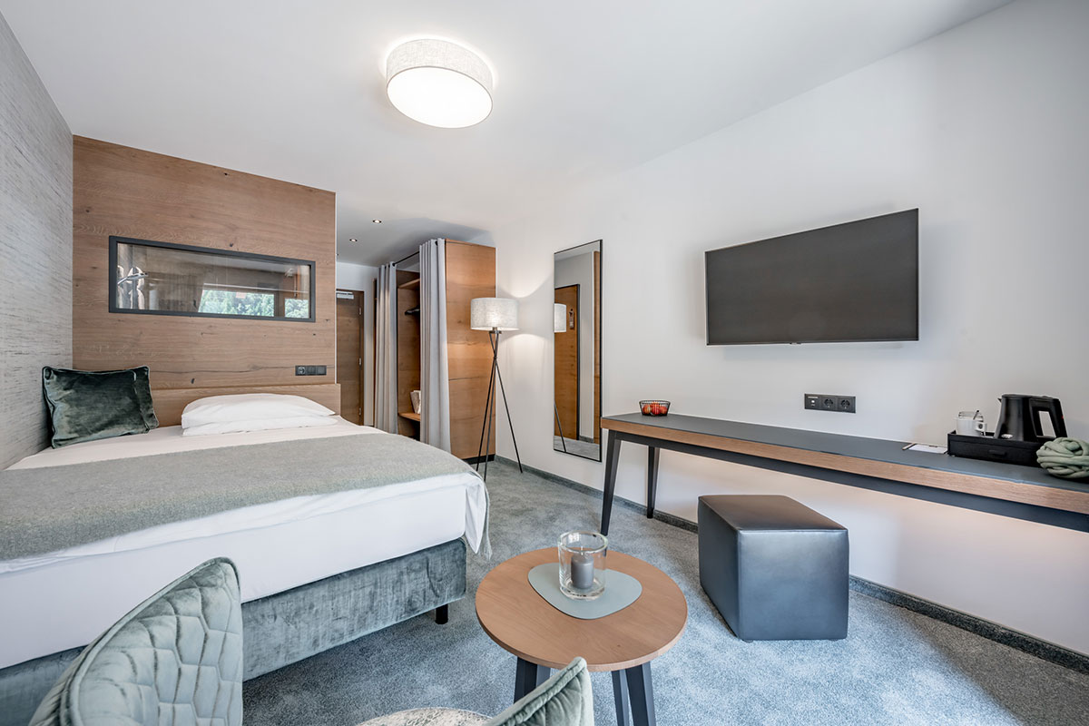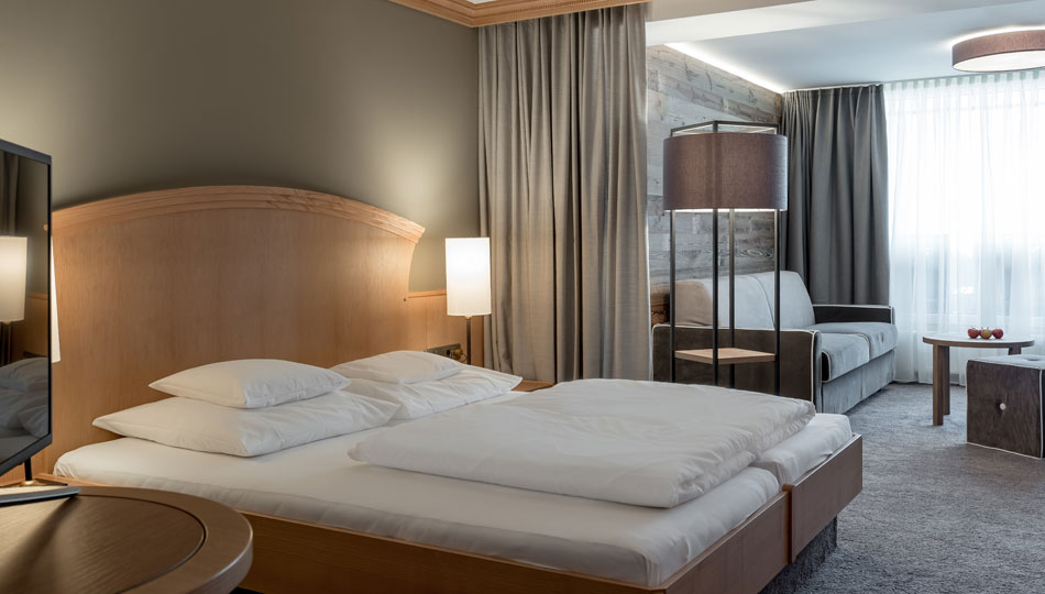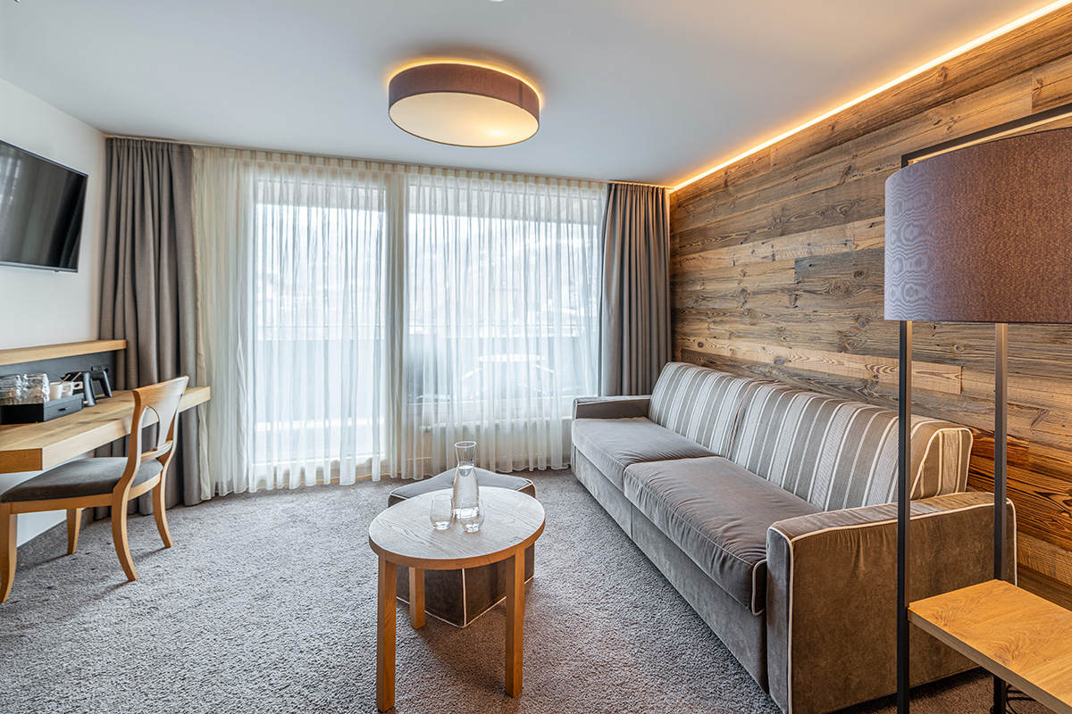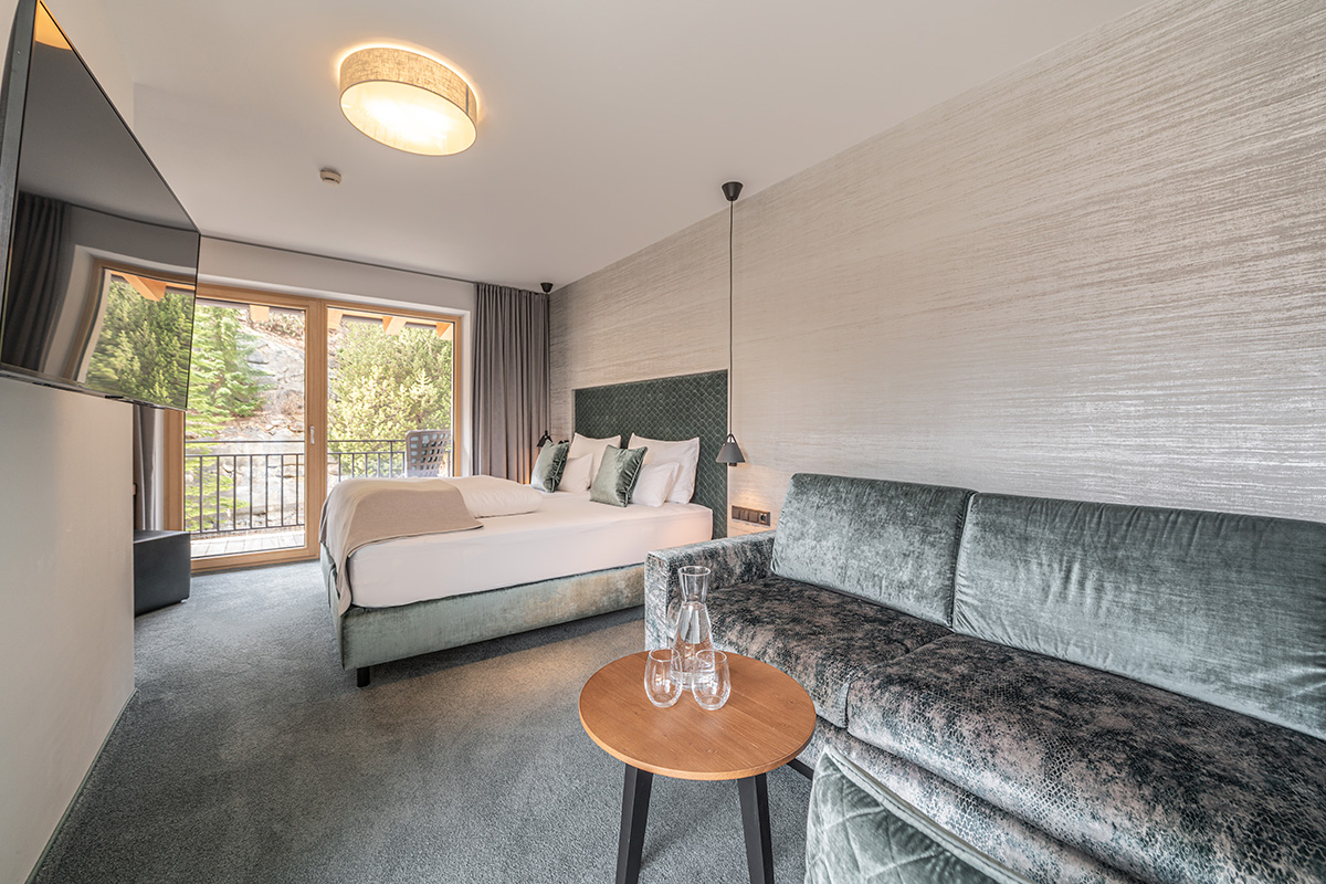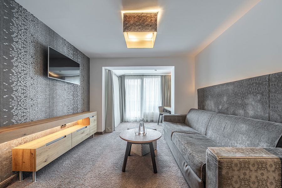 Et meget elegant og moderne dobbeltværelse med opholdsområde og balkon. Værelset er udstyret med telefon, fladskærms-tv, Wi-Fi, værdiboks og elkedel.