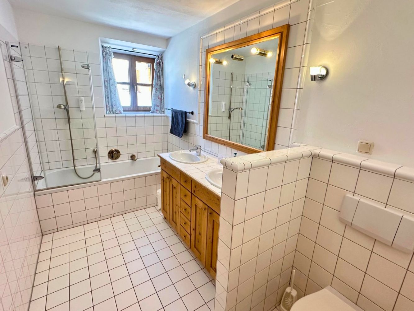 Hyggelige fællesområder med alpin stemningChaleten har en varm og autentisk atmosfære med klassiske alpine detaljer. I stueetagen finder du en hyggelig spisestue med åbent køkken samt en traditionel tyrolsk stenovn. På øverste etage ligger en rummelig stue med store vinduer og flot udsigt over bjergene – ideel til afslapning efter en dag på ski.