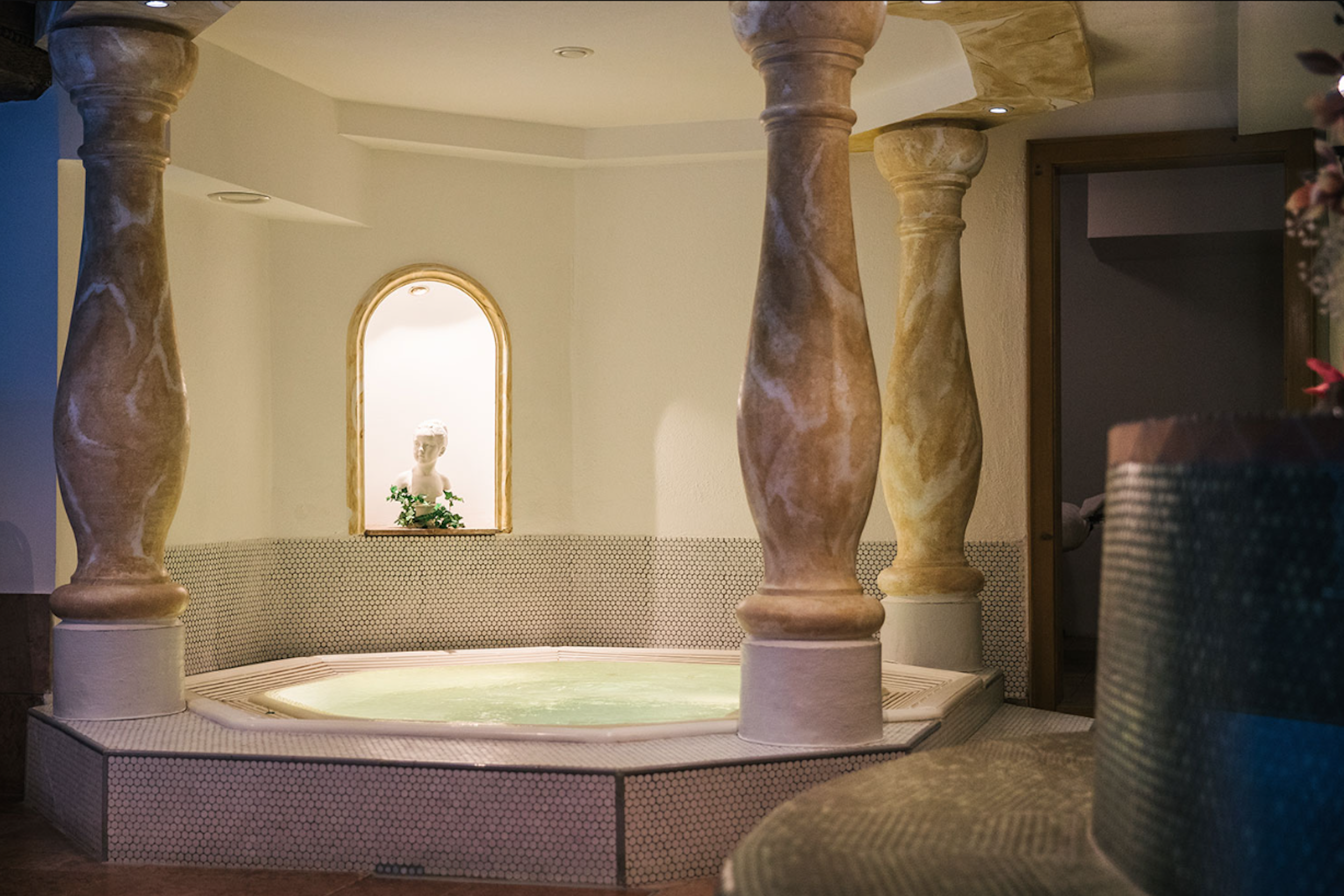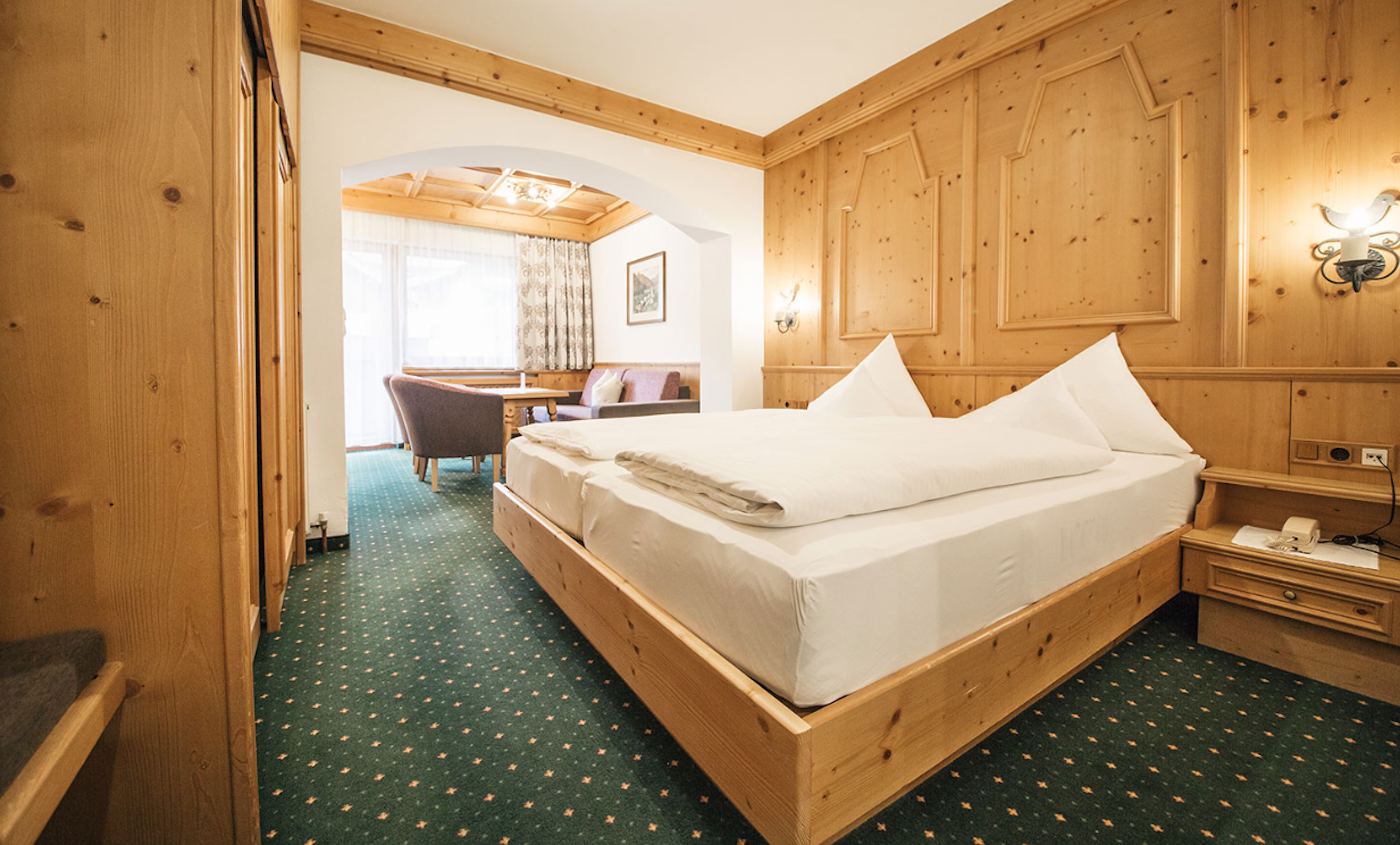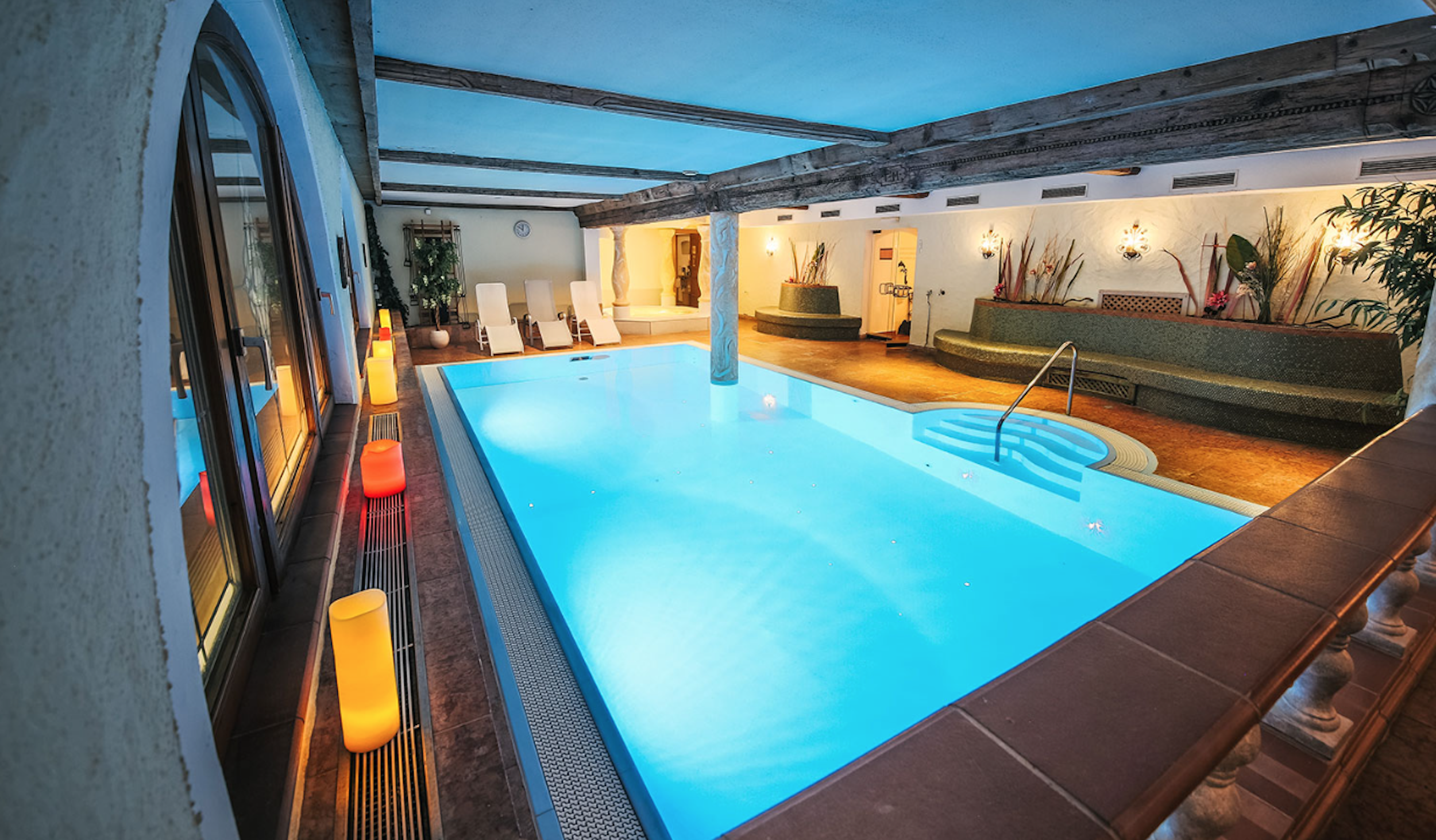 WellnessEfter en aktiv dag i bjergene kan du slappe af i hotellets wellnessområde, hvor du kan tage en forfriskende dukkert i den indendørs pool eller komme ned til jorden i en jacuzzi. Derudover kan du afkoble i saunaen, der forbedrer blodcirkulationen og styrker immunforsvaret, eller i saltvands-dampbadet, der gavner både hud og åndedræt.