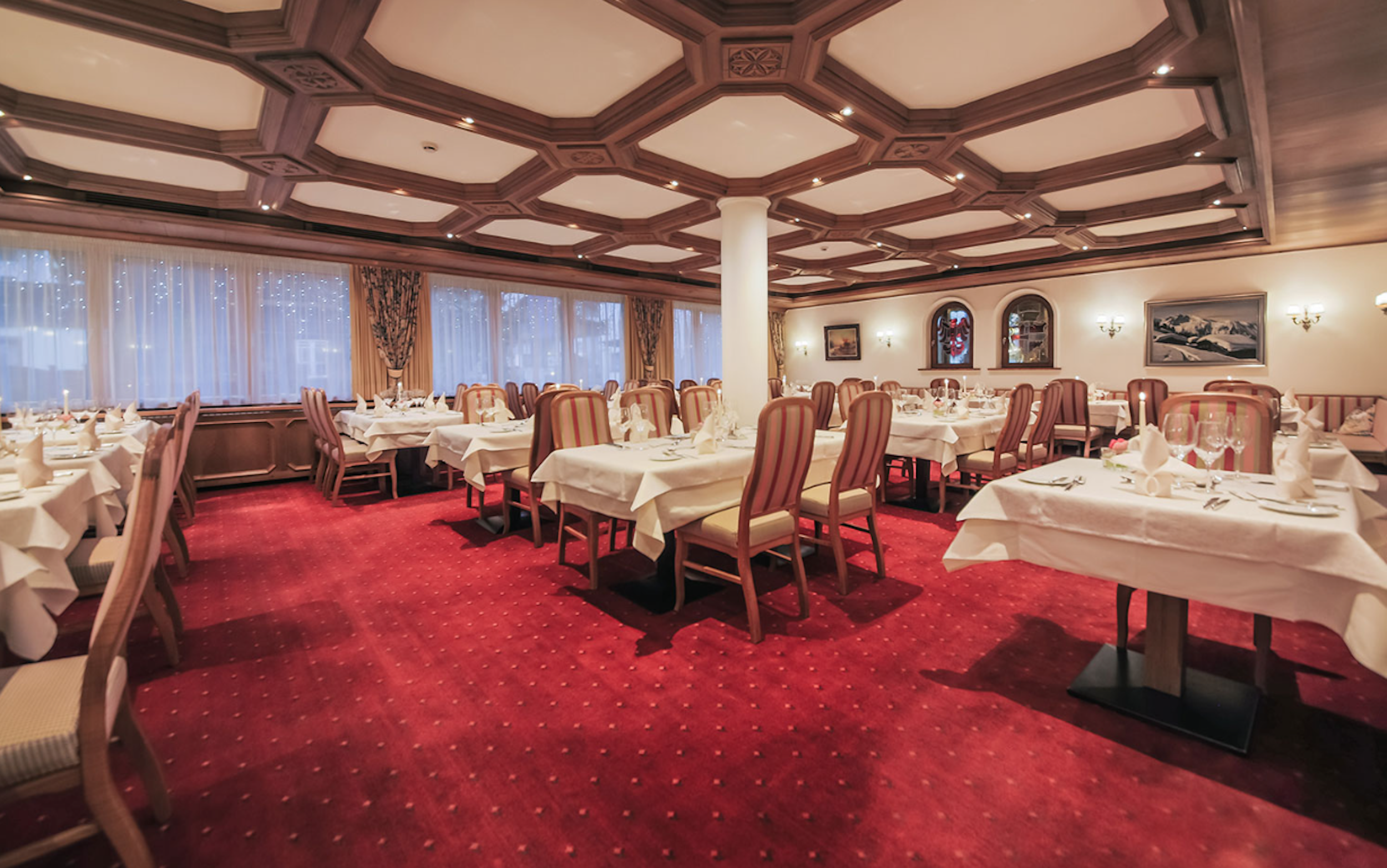 Kulinariske forkælelser og drinks i barenStart dagen med en varierede morgenbuffet, som giver dig den nødvendige energi til en dag i bjergene. Der tages hensyn til særlige diætbehov. Om aftenen vil hotellets kok forkæle dig med både regionale og internationale retter. Berig den kulinariske oplevelse med hotellets udsøgte vine fra både Østrig og resten af verden. Du kan nyde dine måltider i spisesalen eller den hyggelige, traditionelle tyrolske "Stube". Efter aftensmaden kan du afrunde aftenen i hotelbaren eller hotellets lounge med pejs.