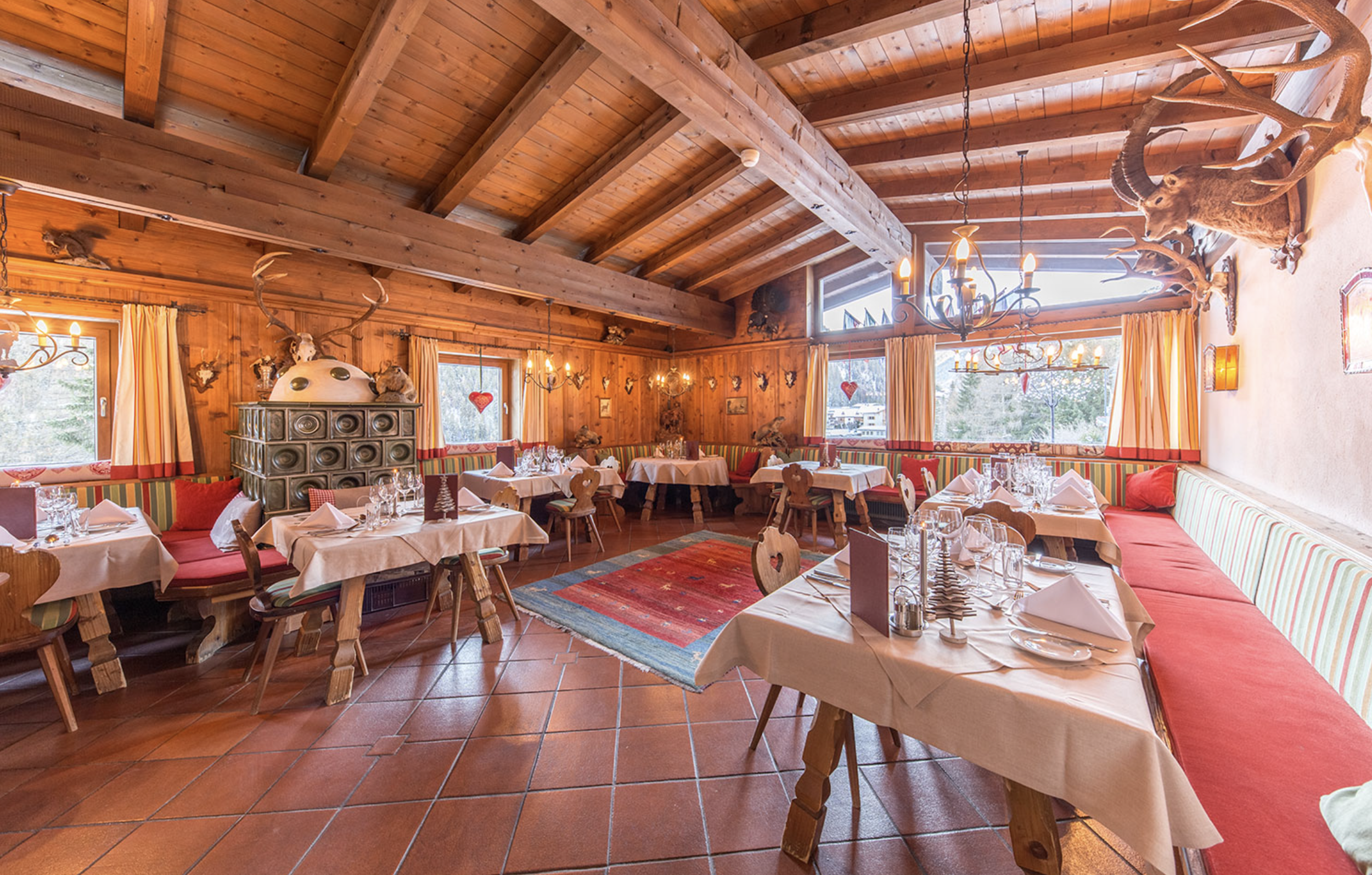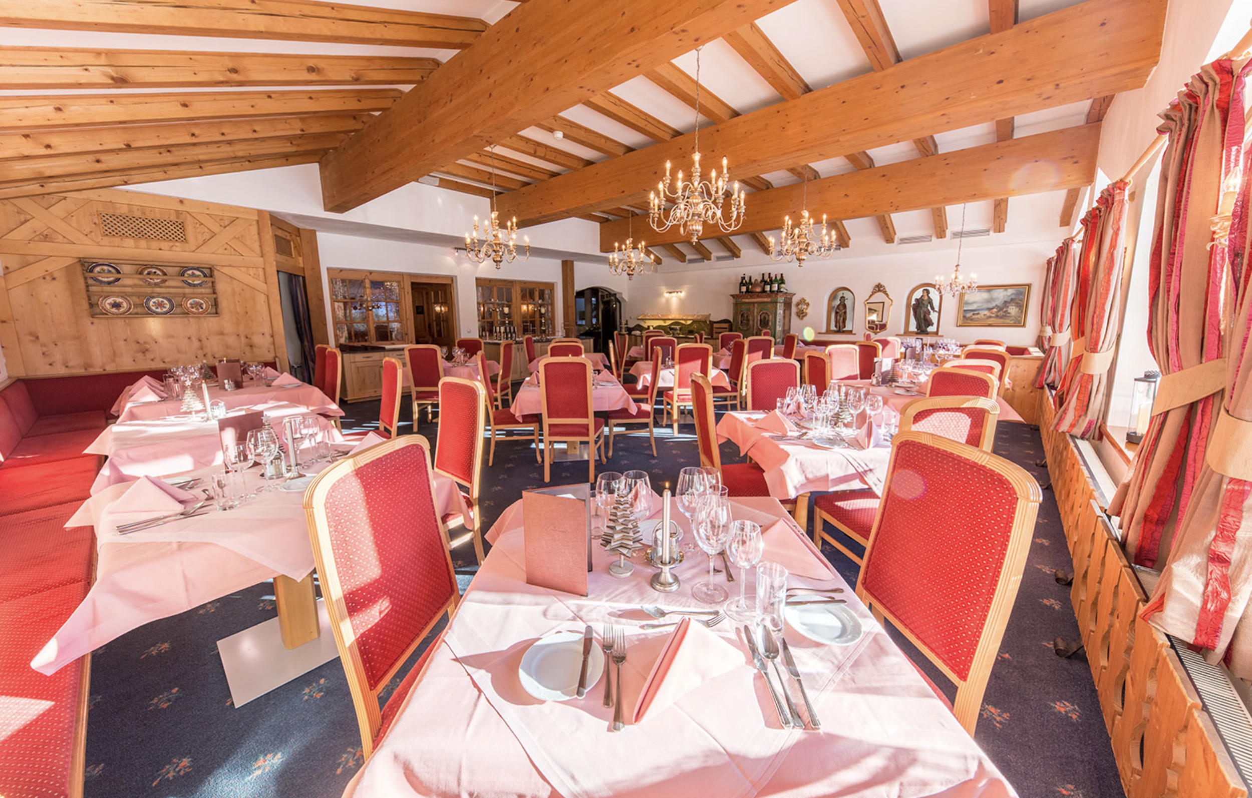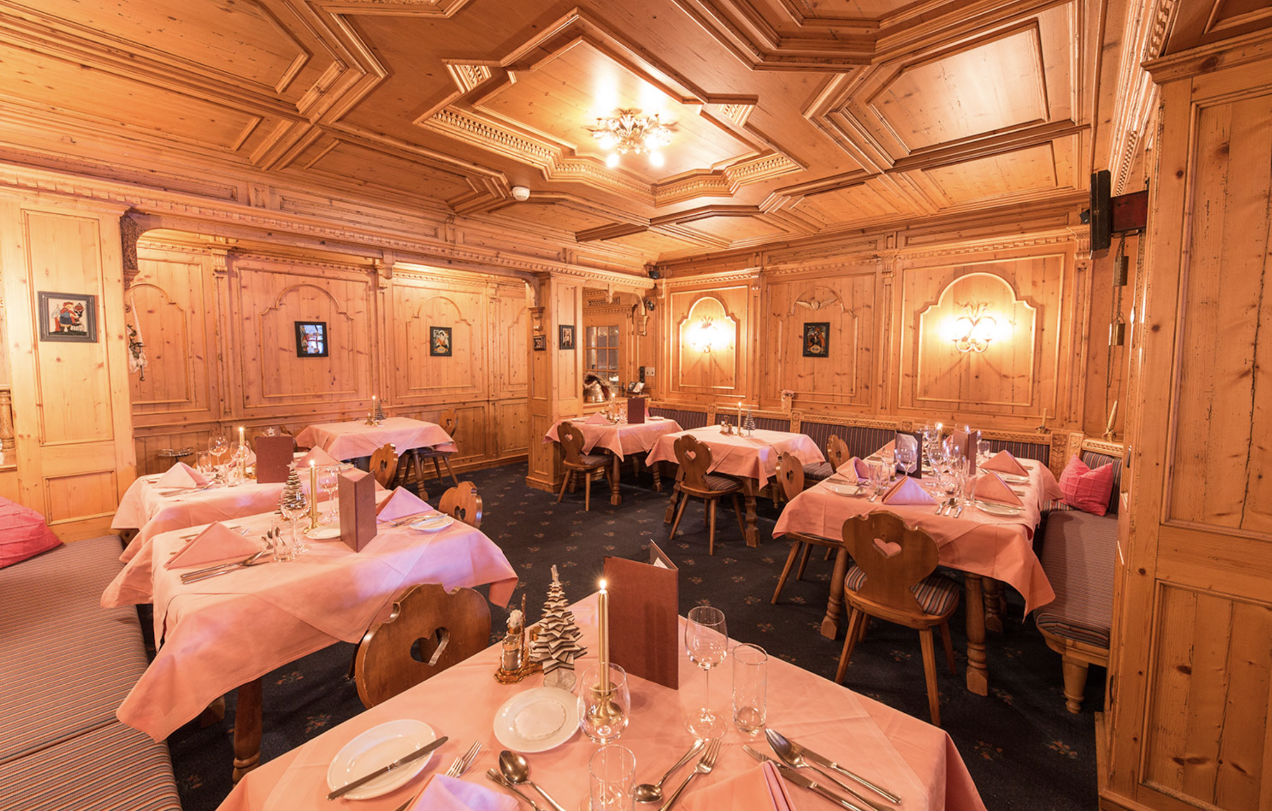 Gastronomiske oplevelser i luksuriøse salonerHver morgen serveres en generøs morgenmadsbuffet med et luksuriøst og varieret udvalg for at sikre den bedst mulige start på dagen. Om aftenen serveres en lækker femretters menu i de hyggelige Jagdstube og Alte Stube. Restauranten har også et rigt udvalg af fine vine til at supplere middagen.