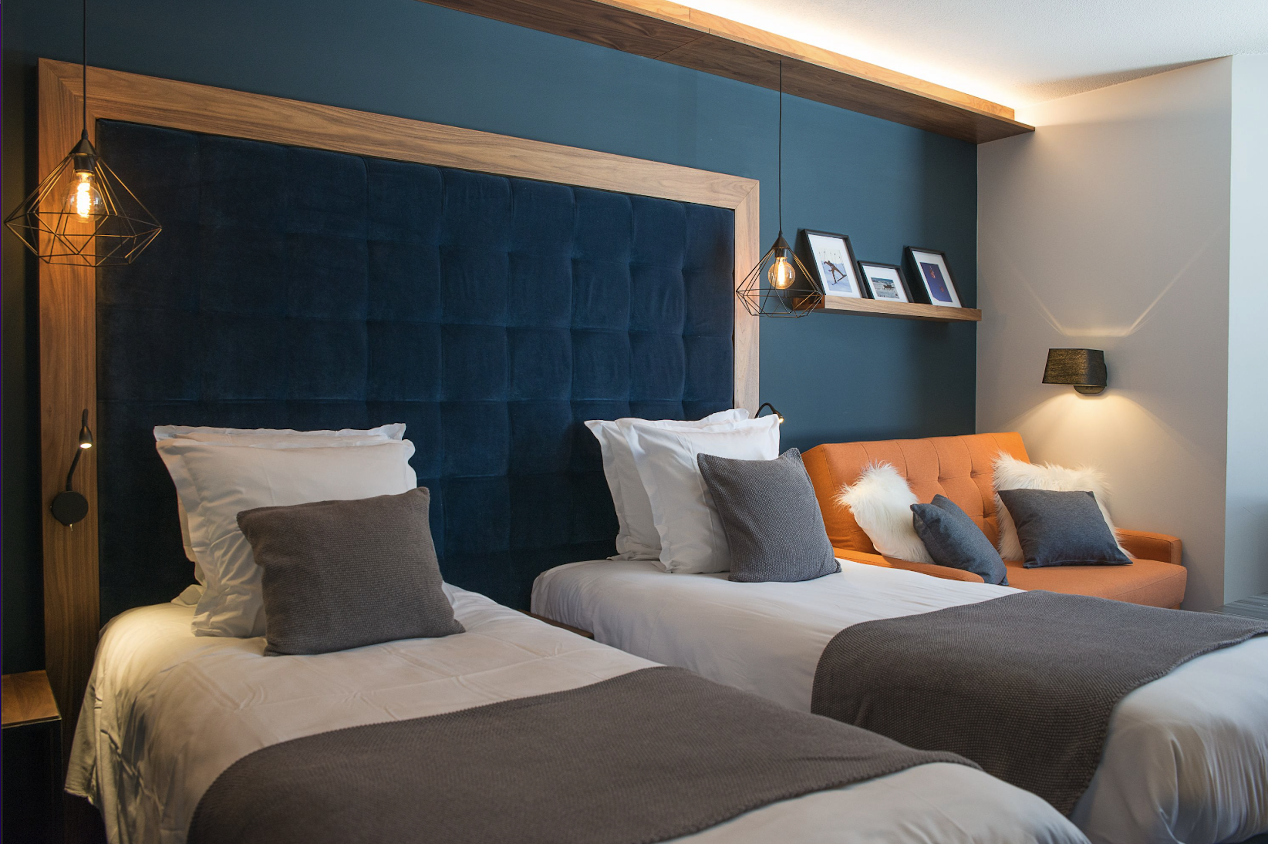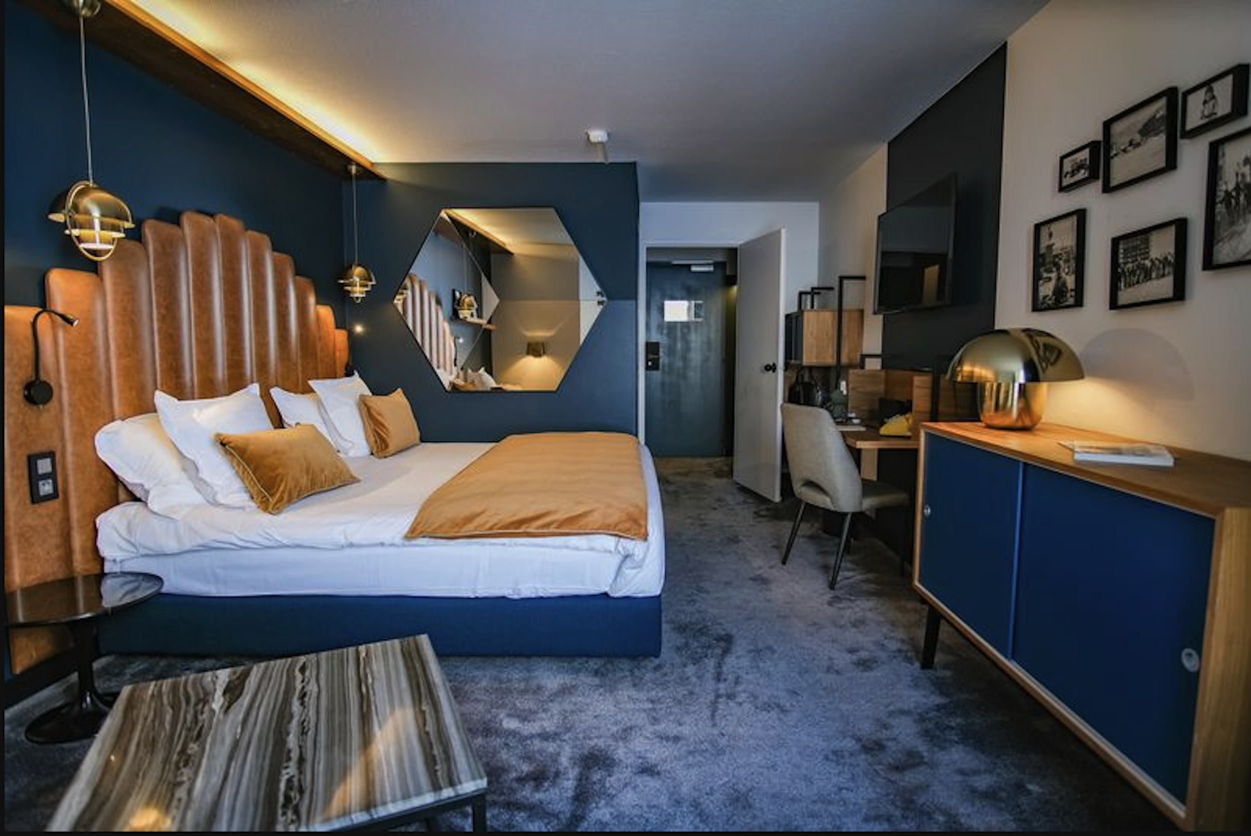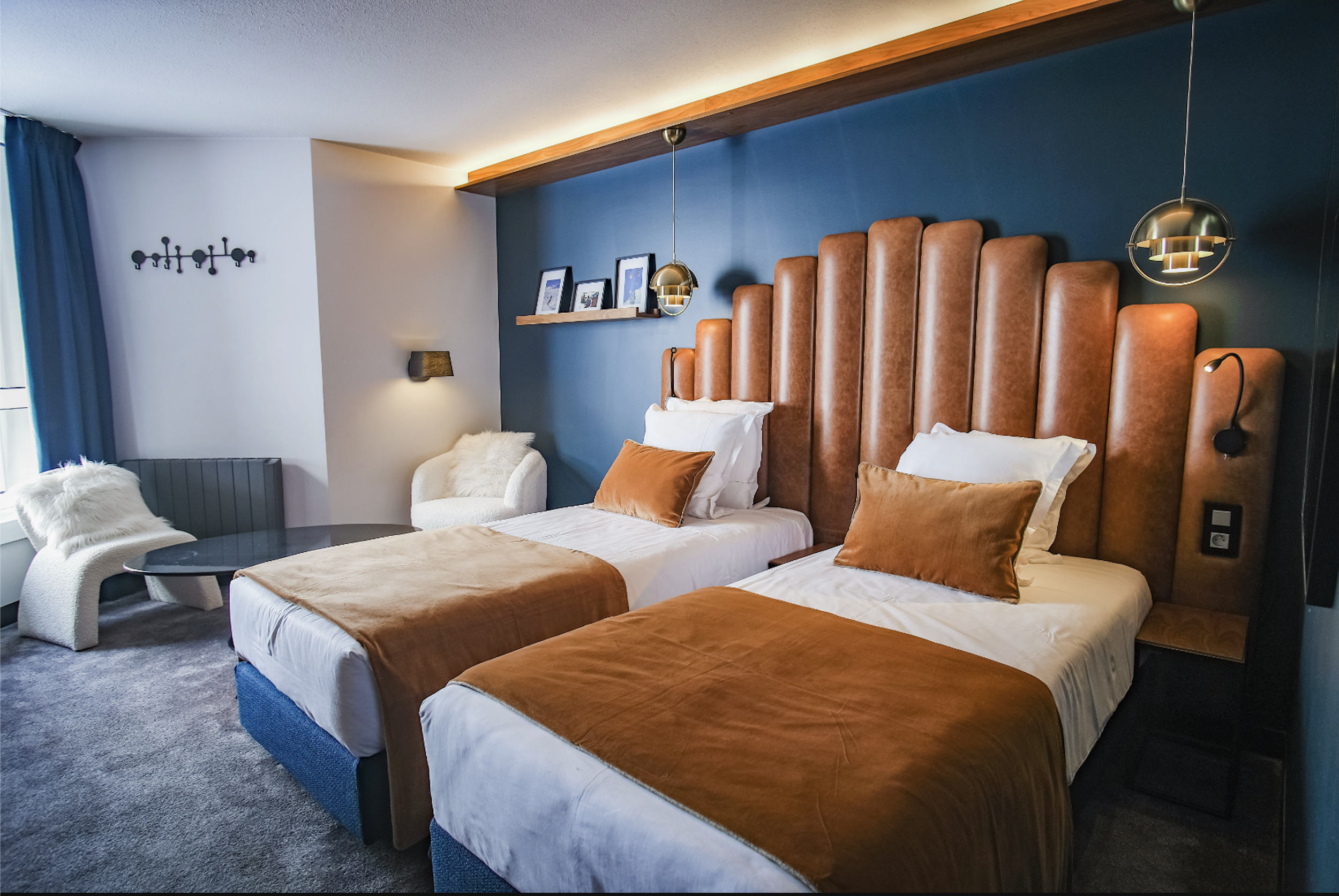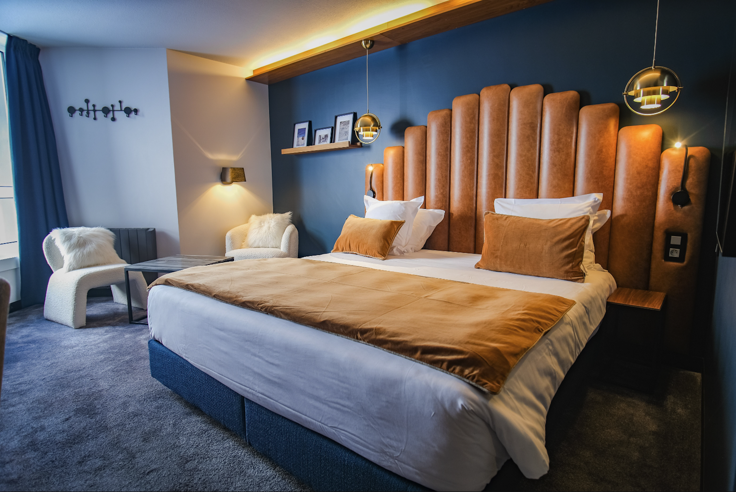 Moderne og flot dobbeltværelse på 23 m2 egnet til 2 personer med udsigt over pisten. På værelset findes en dobbeltseng (180x200) eller to enkeltmands senge (90x200). Herudover er der indbygget klædeskab, Marshall højtaler, Nespresso maskine, og fjernsyn. Herudover findes der eget toilet med bad.