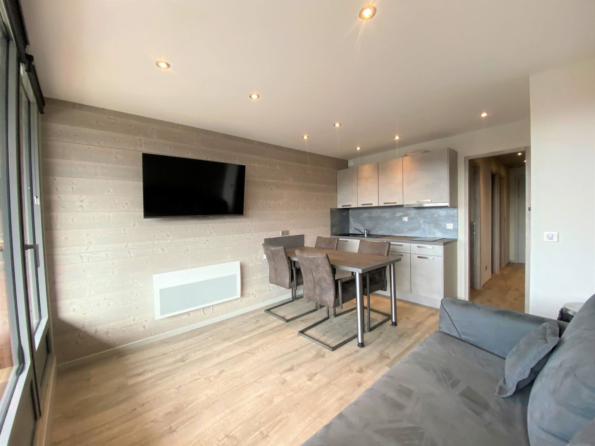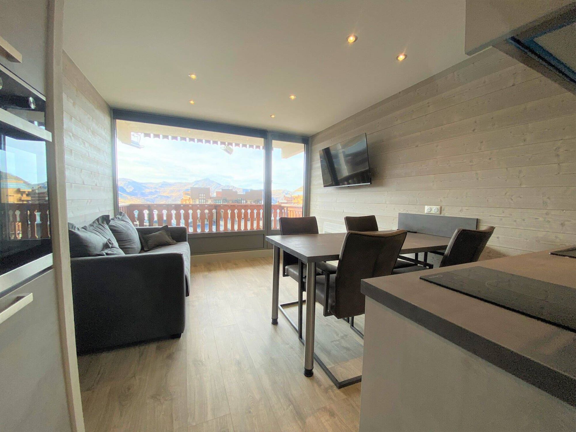 Denne helt nyrenoverede studiolejlighed med kahyt på omkring 30m², beliggende på fjerde sal, har en sydvestvendt balkon med en smuk udsigt over bjergene og feriestedet.