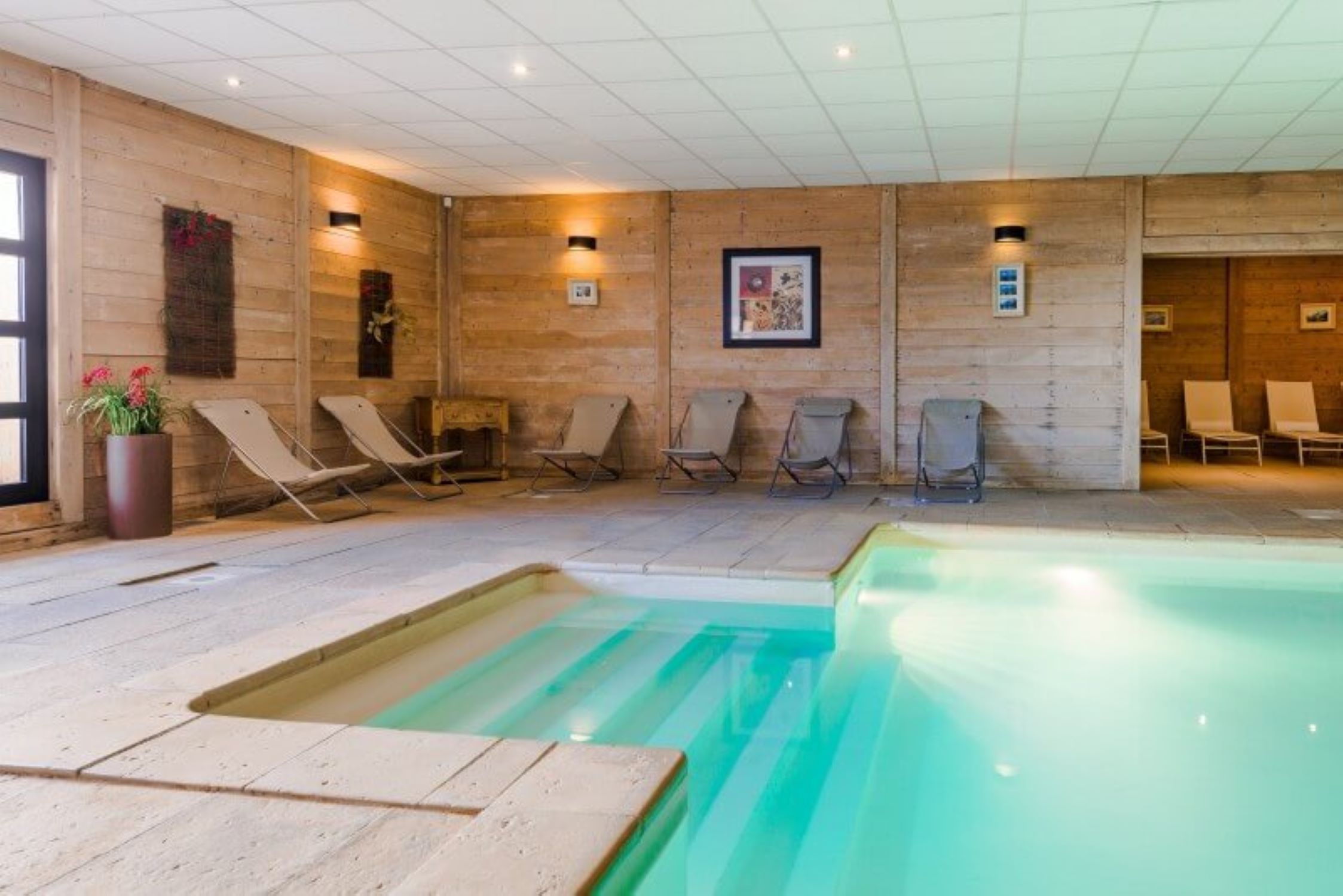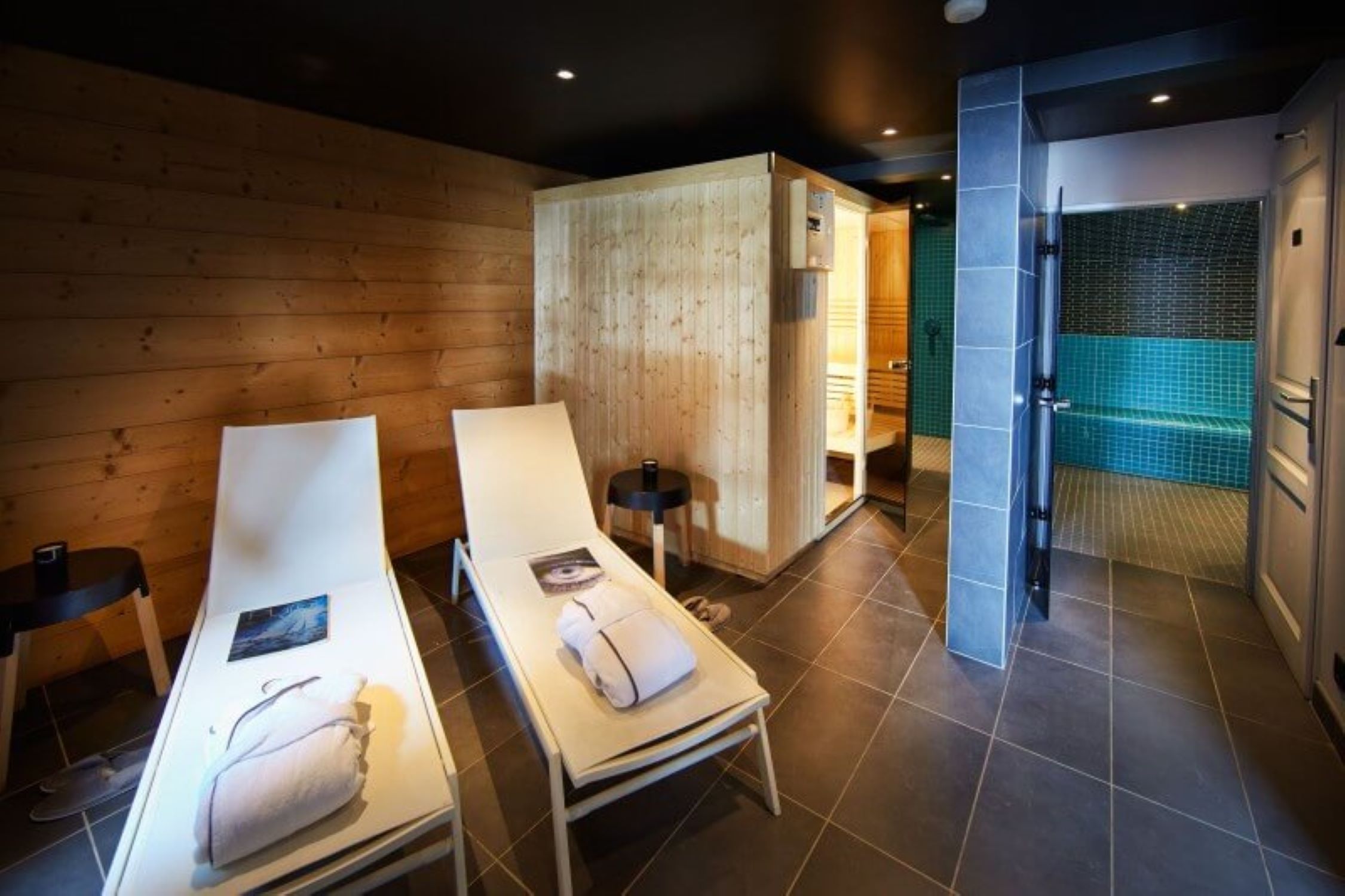 Efter en lang dag på ski, kan du slappe af i wellnessområdet som byder på indendørs pools, dambad, sauna og fitnesscenter.