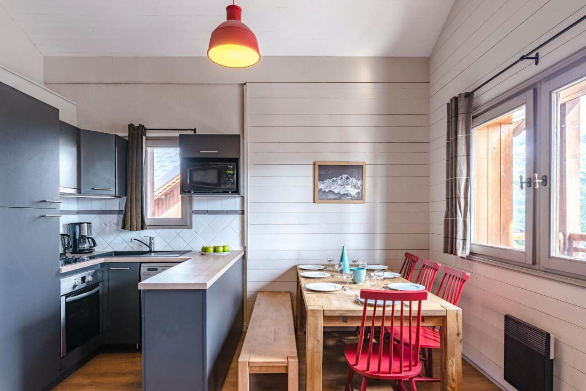 De charmerende chaletlejligheder "Les Chalets de Rosaël" kombinerer komfort med sin rustikke træarkitektur for at skabe en autentisk alpestemning. Beliggende i den øverste del af