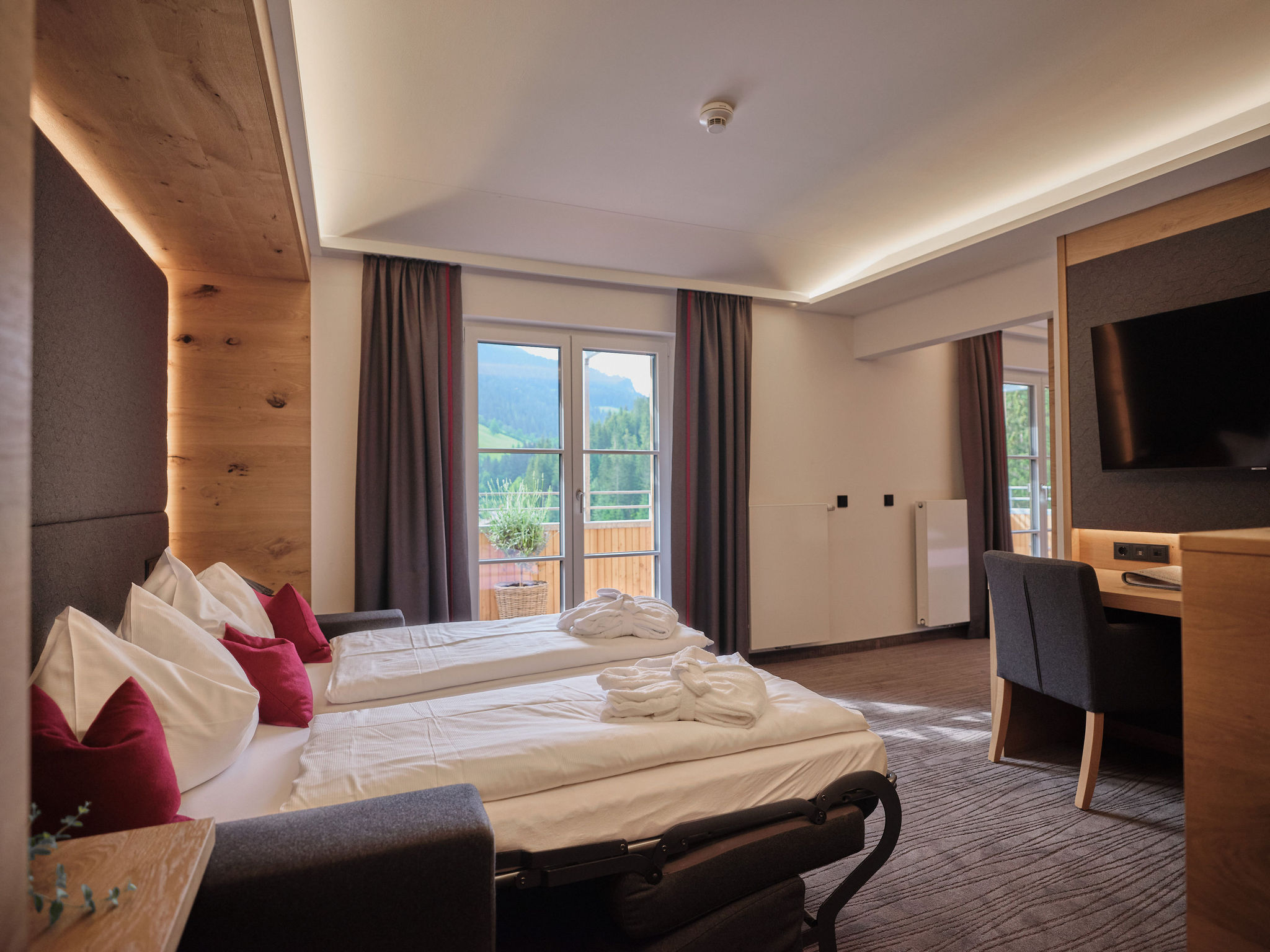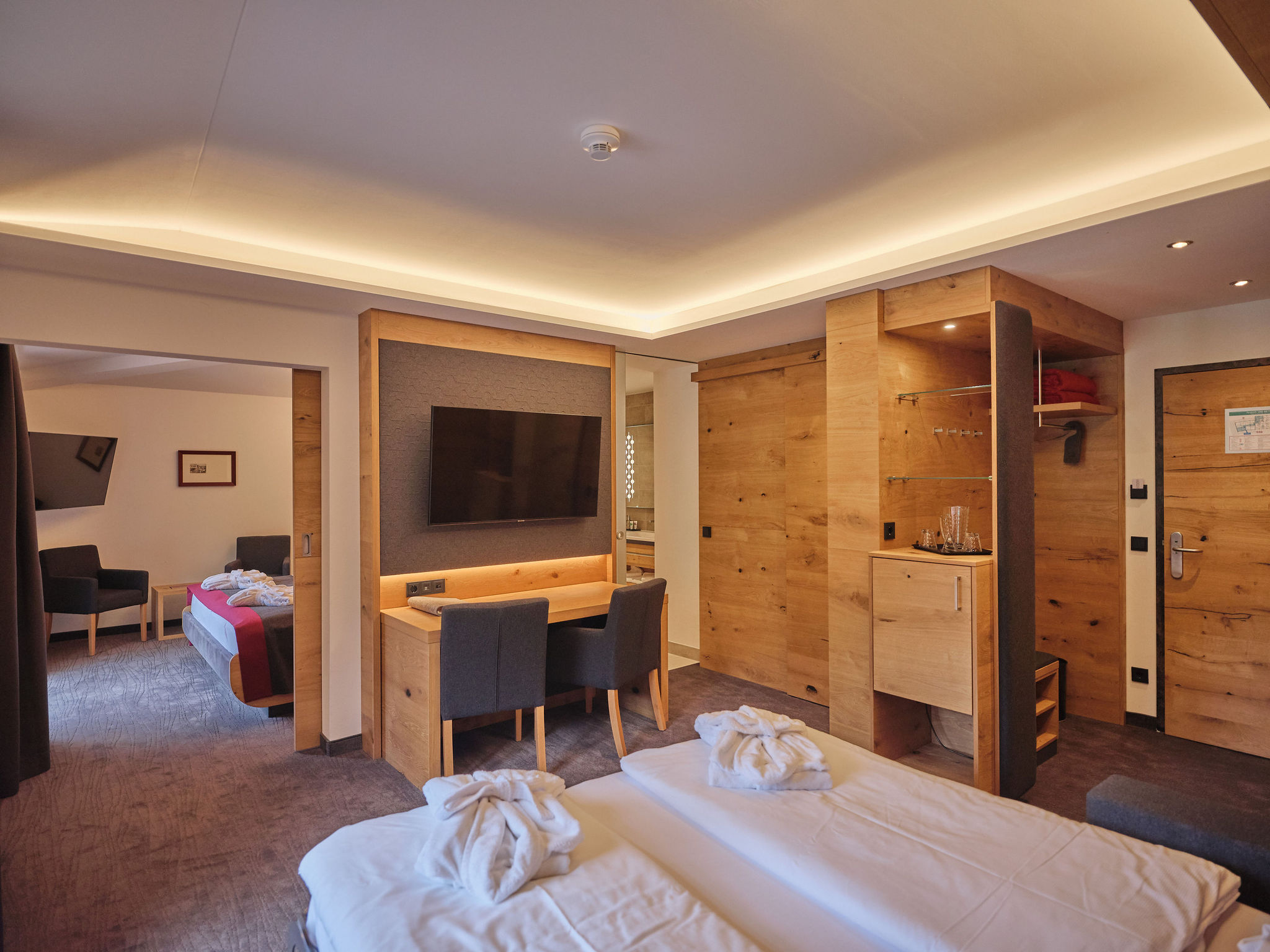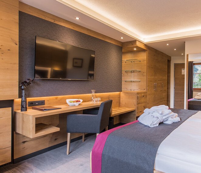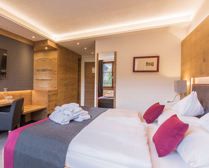 Luksuriøst og moderne familieværelse med plads til maks 5 personer. På værelset finder du to dobbeltværelser med to store dobbeltseng samt en sofaseng. Herudover findes der bad med seperat toilet, fjernsyn, minibar, og WIFI. Enkelte værelser findes med balkon.