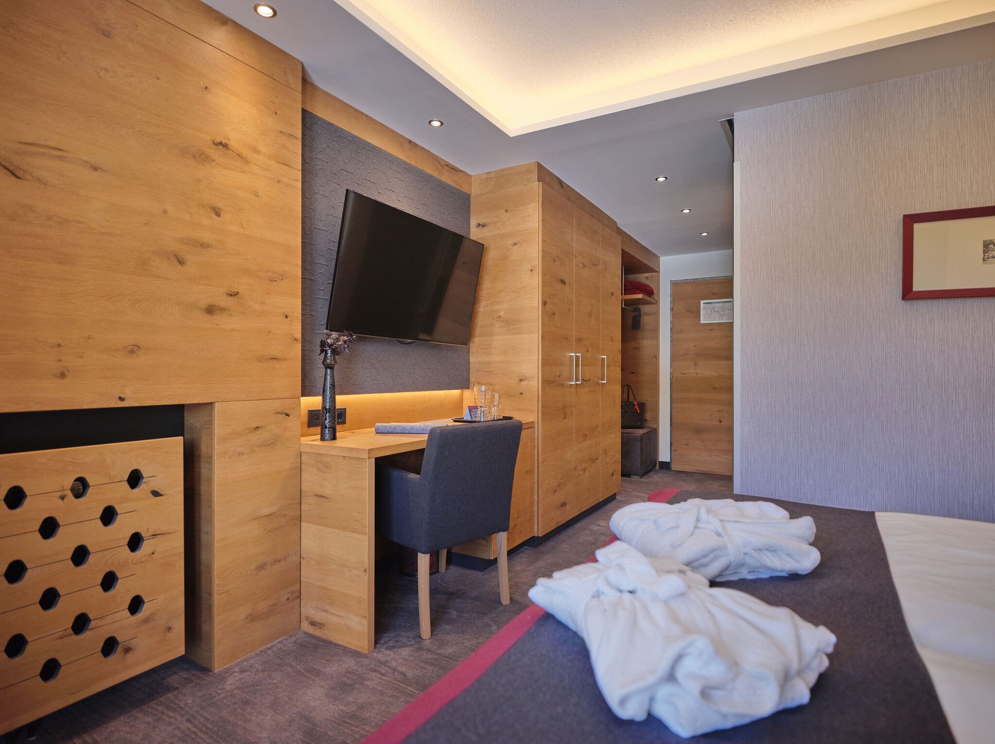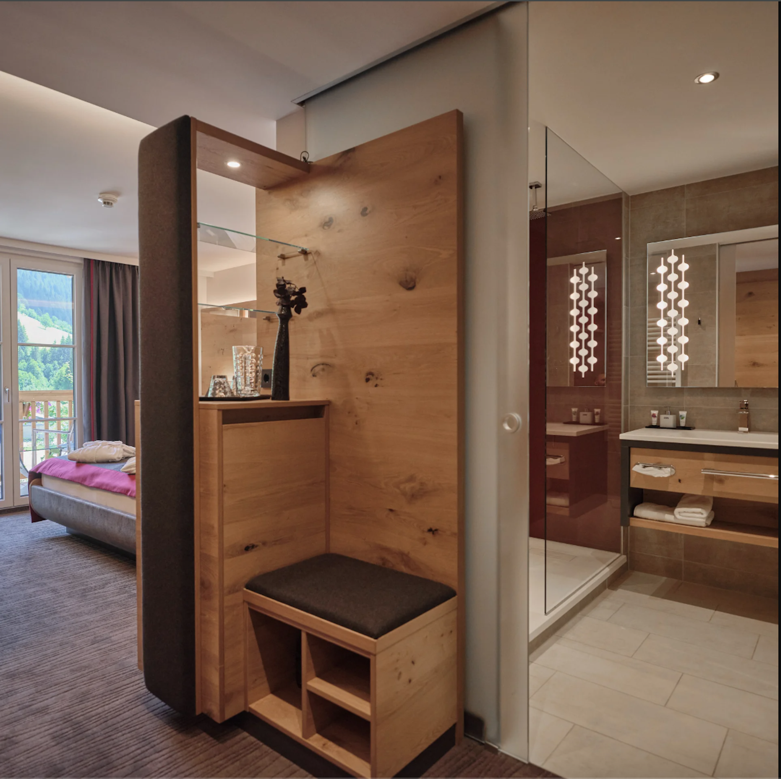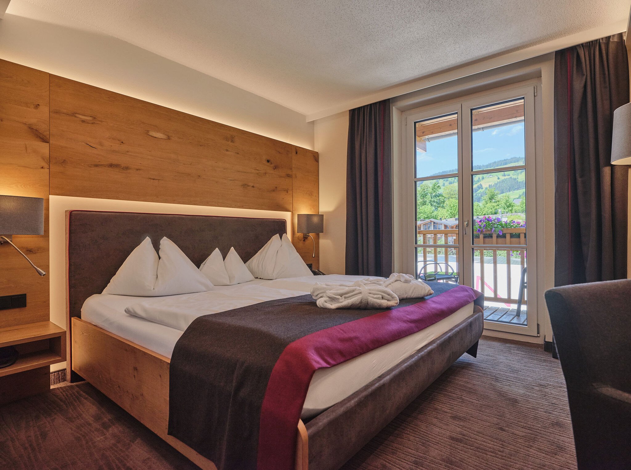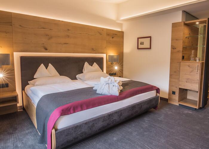 Luksuriøst og moderne dobbeltværelse med plads til maks 4 personer. På værelset finder du en stor dobbeltseng samt en sofaseng. Herudover findes der bad med seperat toilet, fjernsyn, minibar, og WIFI. Enkelte dobbeltværelser findes med balkon.