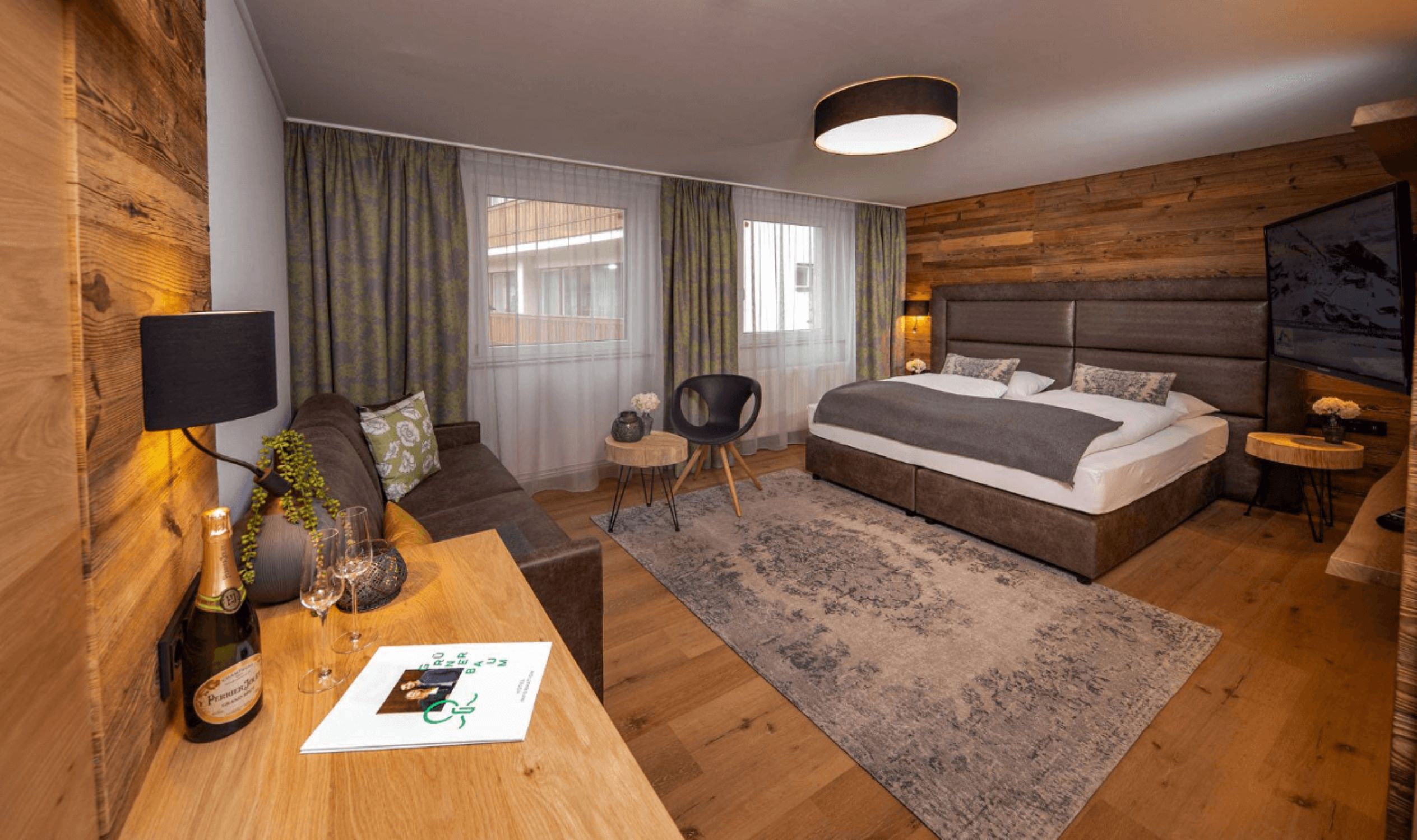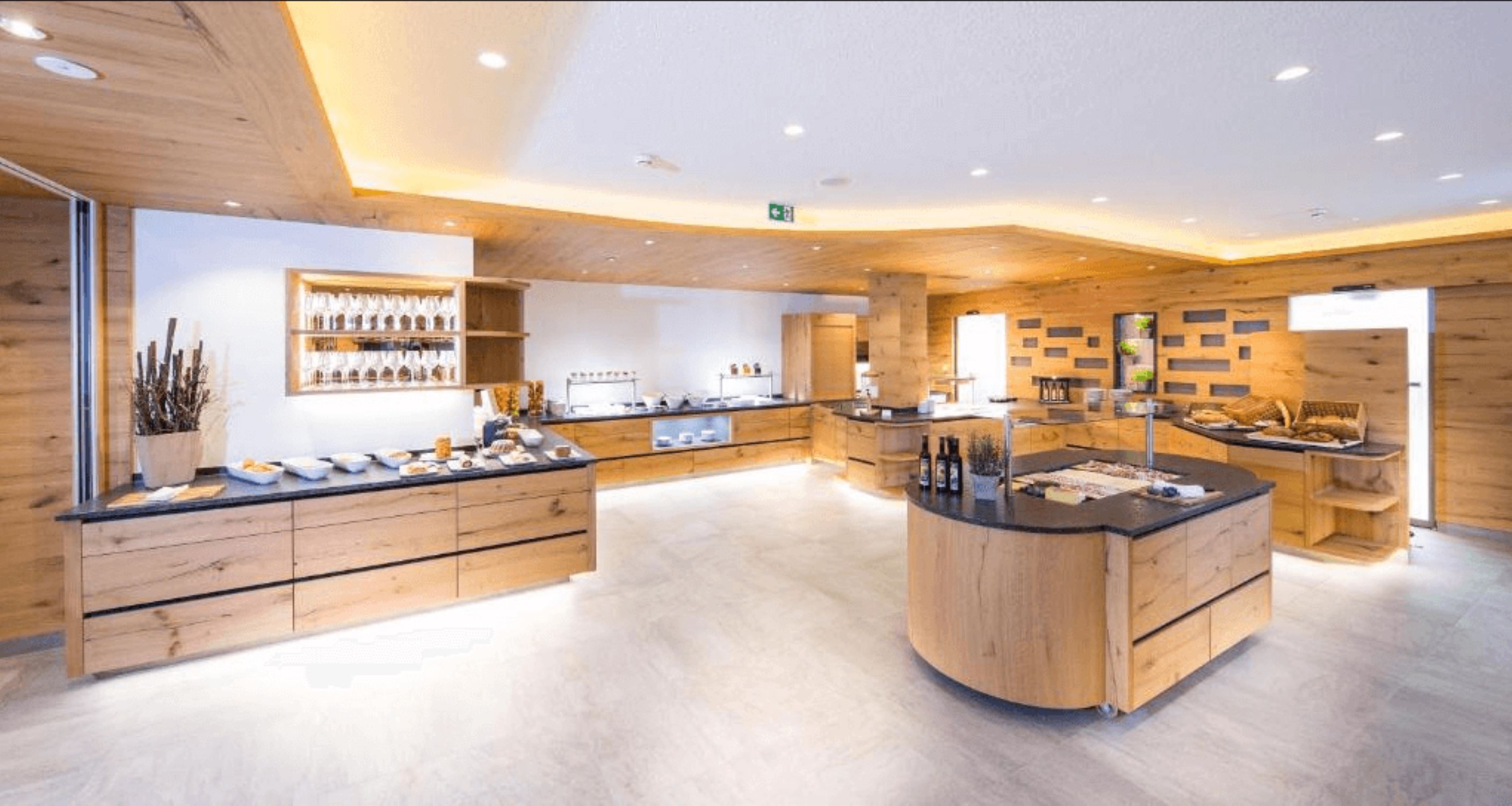 Morgenmadsbuffet og aftenunderholdningI dit ophold på Grüner Baum har du, inkluderet i din rejse, halvpension. Dette gælder aftensmad som består af 5-retters (dette skal bookes på forhånd) eller valget mellem 3 forskellige hovedretter (kød, fisk eller vegetar) samt dessert. For at være klar til en lang skidag, kan du nyde godt af hotellets rige morgenmadsbuffet med friske produkter. Har du kræfter tilbage efter en dag på pisten, kan du nyde en cocktail eller svinge hofterne på hotellets bar "Greens" som du finder lige ved siden af hotellet. Du finder også en bar inden i hotellet, hvor du kan nyde en digestiv efter et godt måltid.
